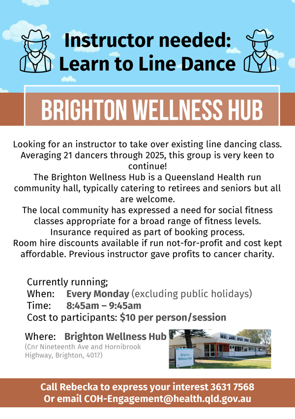 Location: Brighton Wellness Hub (Cnr Nineteenth Ave and Hornibrook Highway, Brighton, 4017)