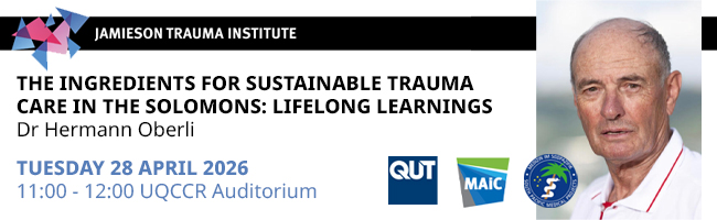 | Improving emergency trauma care for rural, regional, and remote Queenslanders - Santomauro C, McLanders M, Pollard C, Rae D, Sanderson P, Midwinter M - Advance Qld Industry Research Fellowship | 2020 |
