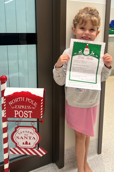 One of the first participants, patient Skylar was thrilled to learn that Santa’s elves would be collecting her letter and delivering it all the way to the North Pole.