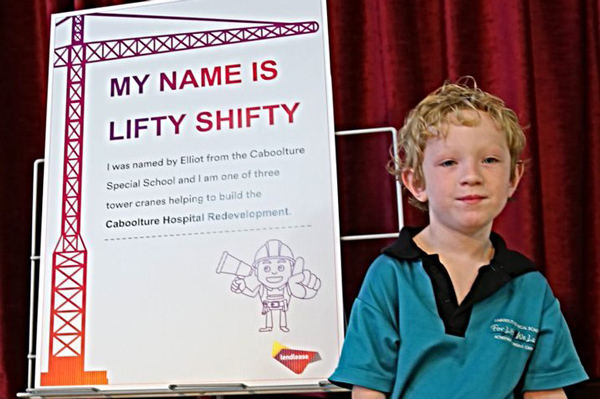 Six-year-old student, Elliot, has won $1000 worth of books for Caboolture Special School, after suggesting the name ‘Lifty Shifty’ for one of the tower cranes to be installed at the Caboolture Hospital Redevelopment construction site.